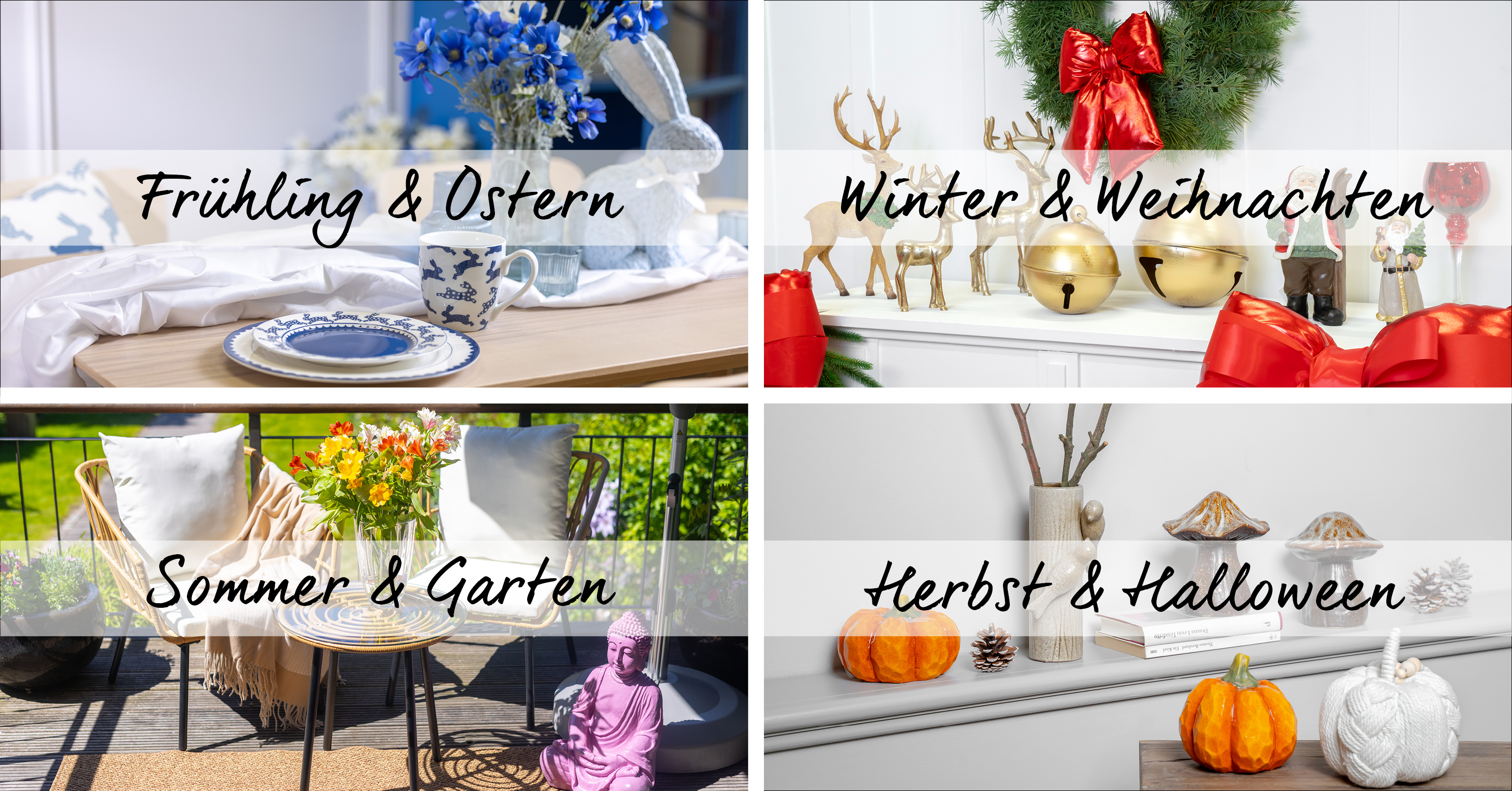 Neben zeitlosen Dekoideen finden Sie bei uns das ganze Jahr über saisonale Kollektionen für jede Jahreszeit und jeden Anlass.